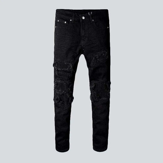 Black painted patch men's jeans